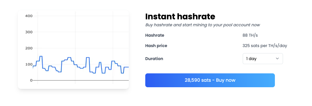 You can purchase up to 14 days of hashrate at 88TH/s.