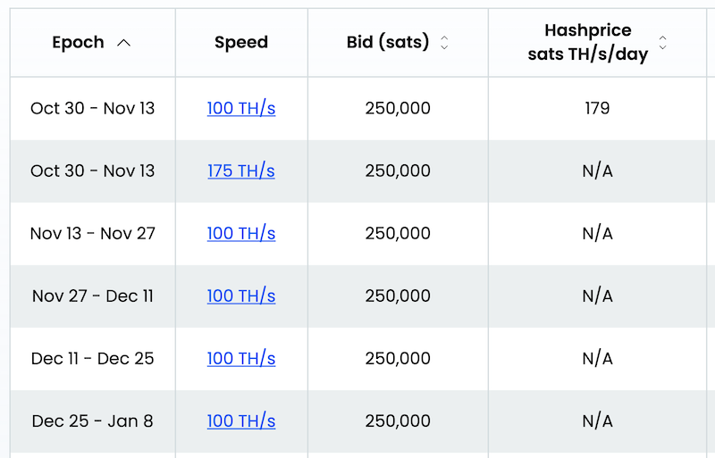 Place your bid on hashrate for the next 12+ difficulty adjustments.