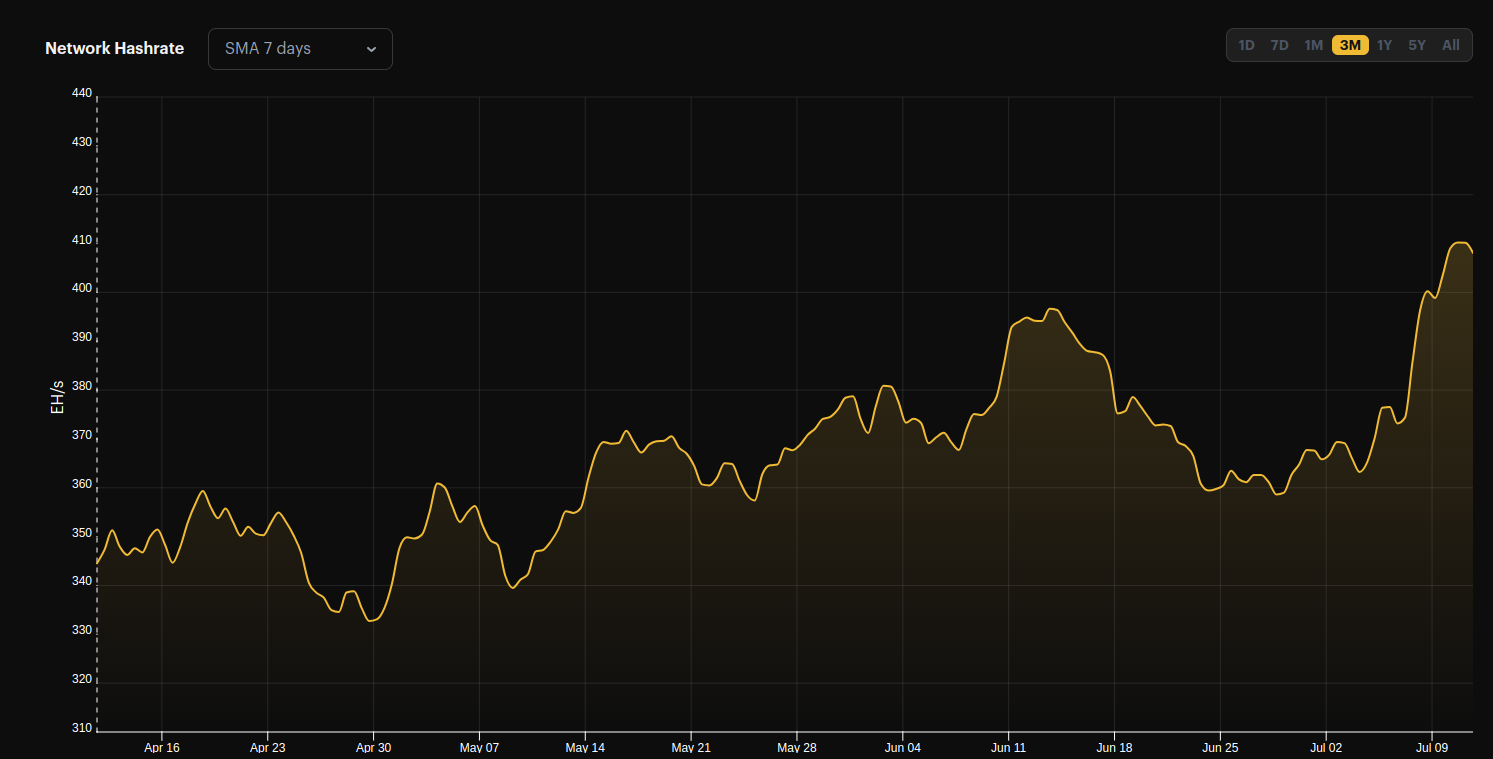 @TheMinerMag recently projected the average hashrate for July to be nearly 400 EH/s.
