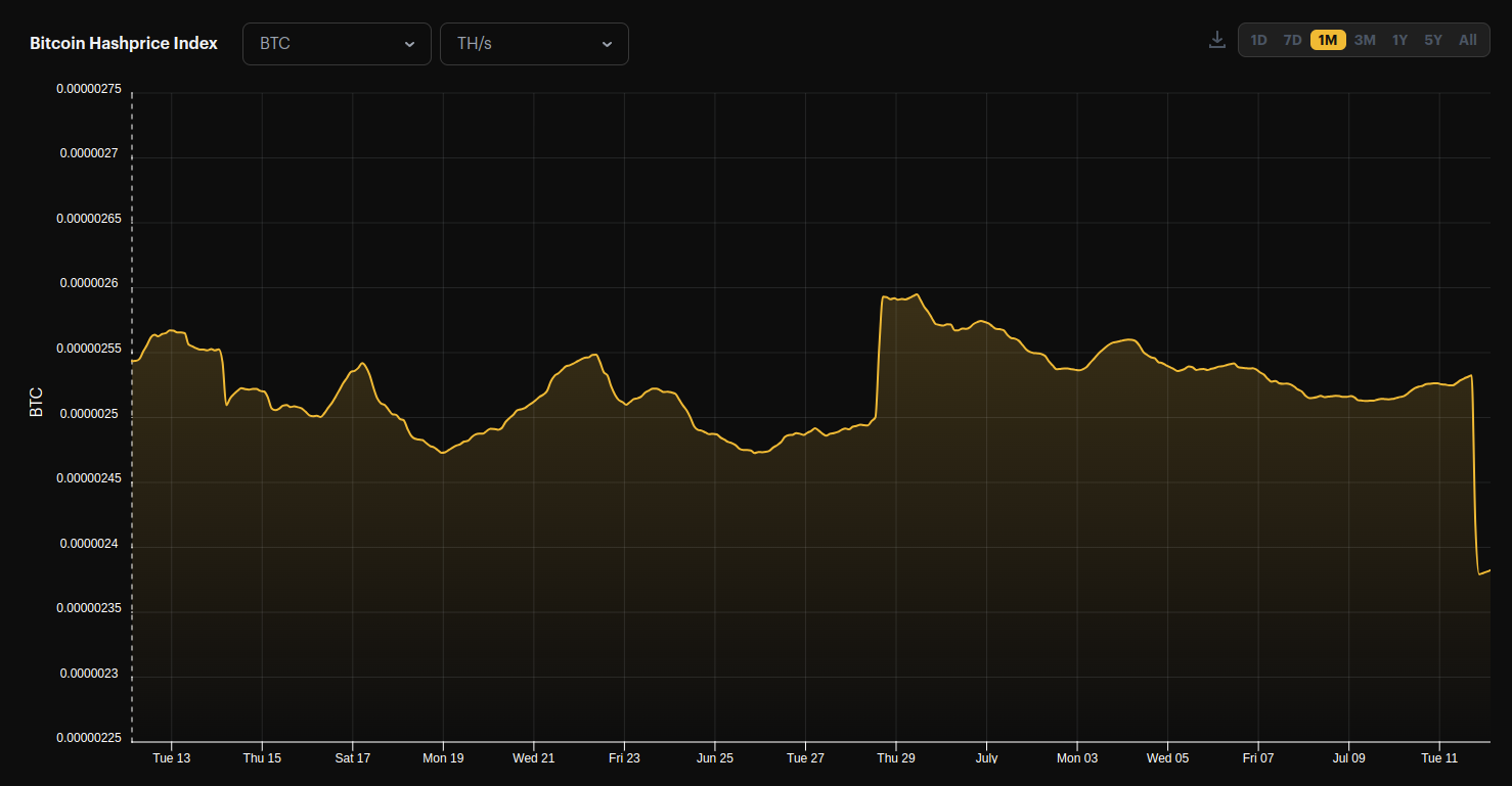 Hashprice: ~240 sats/TH/s/day