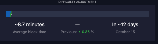 We entered the new difficulty epoch today: October 3rd, block height 810,432.