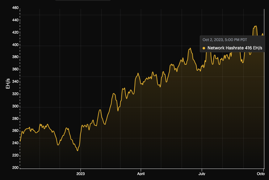 - Network Hashrate: ~416 EH/s