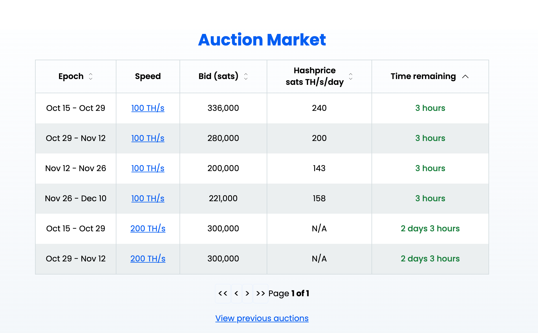 Now you can sort by mining start date, bid, hashprice and time remaining