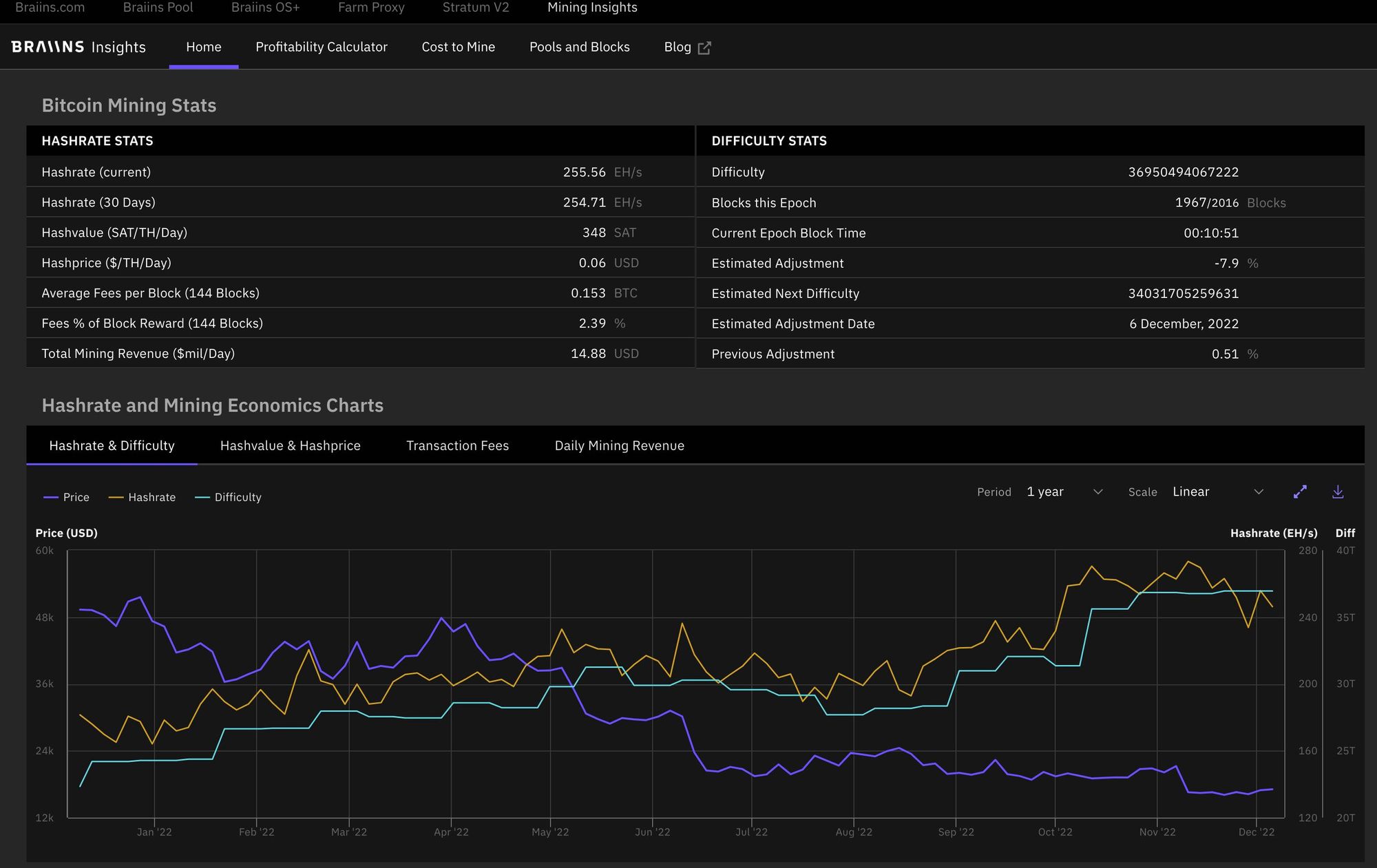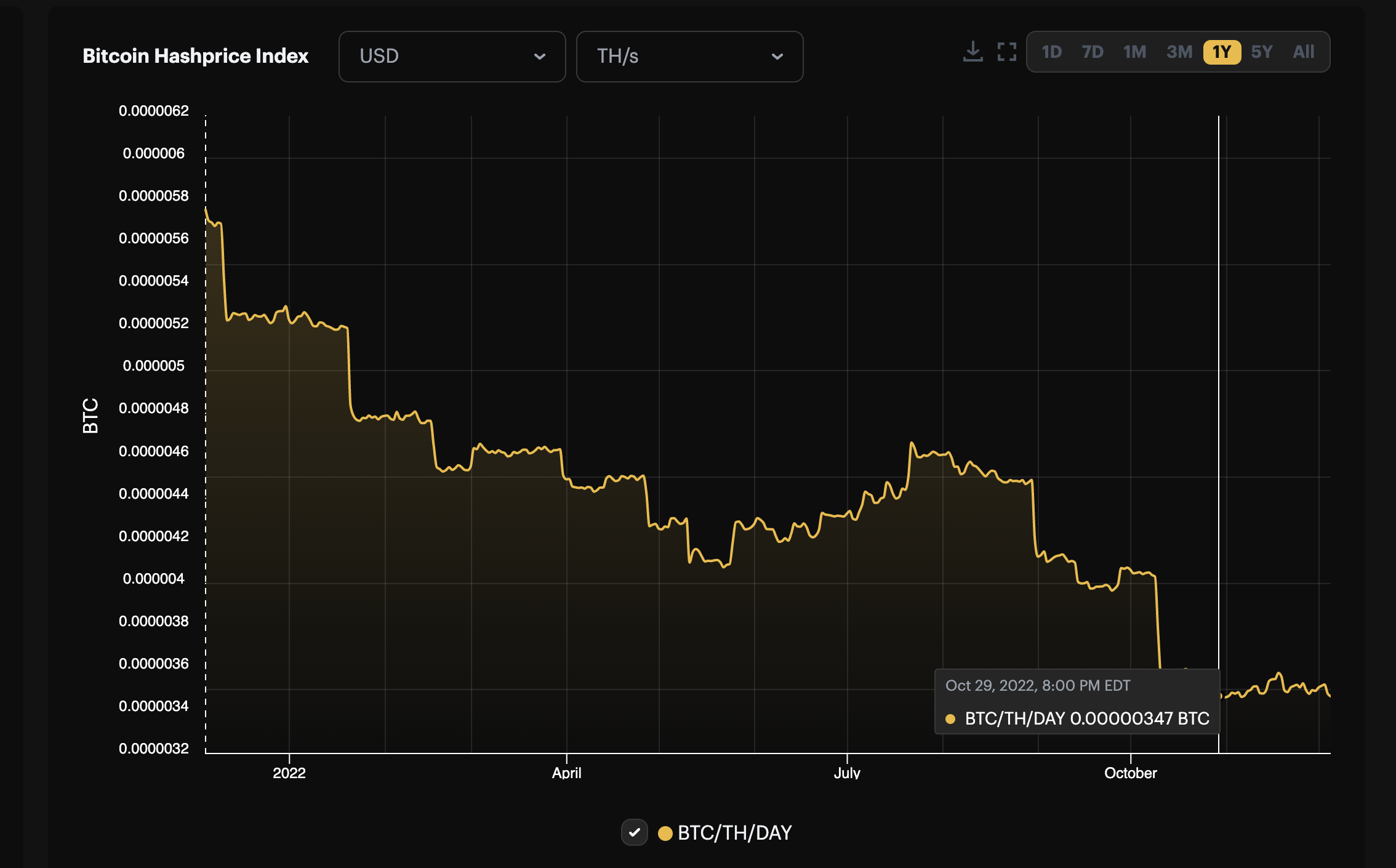 Hashprice = Block reward + Transaction fees / Network Hashrate