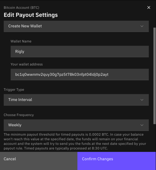 Step 3 - Set Payout Details on Braiins Pool