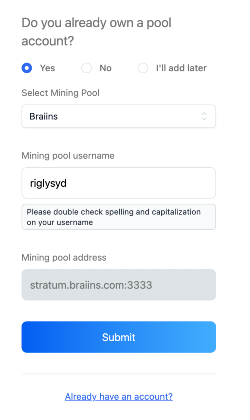 - Go to the Braiins sign-up page