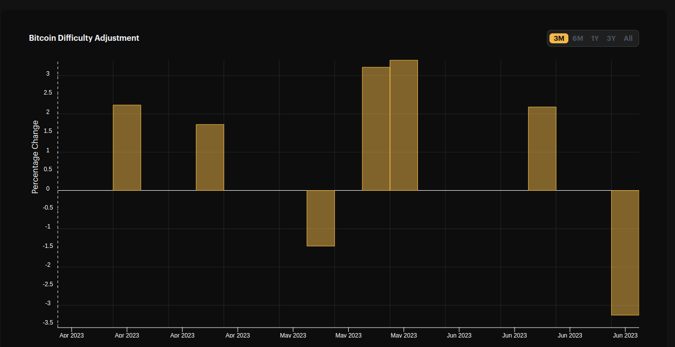 With a few consecutive increases in difficulty, it's about time we lay off the gas and adjust back down.