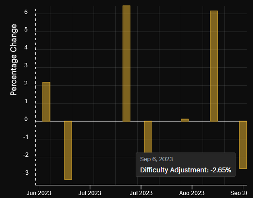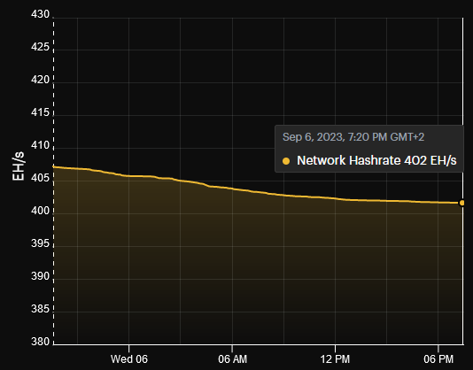 We are entering Epoch 400 with a newly increased difficulty of 54.15 T, a -2.65% change.