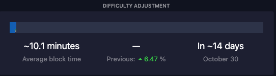 We entered the new difficulty epoch yesterday: October 16th, block height 812,448.