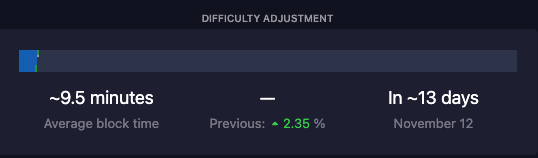 We entered the new difficulty epoch yesterday: October 29th, block height 814,464.