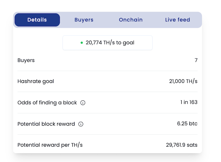 - Pick your contribution to the Block Party (21, 100, or 210 TH/s)