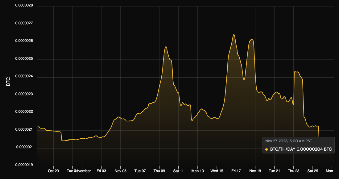 - 204 sats/TH/s/day