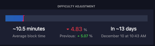 We entered the new difficulty epoch on Saturday, November 25th, block height 818,496.