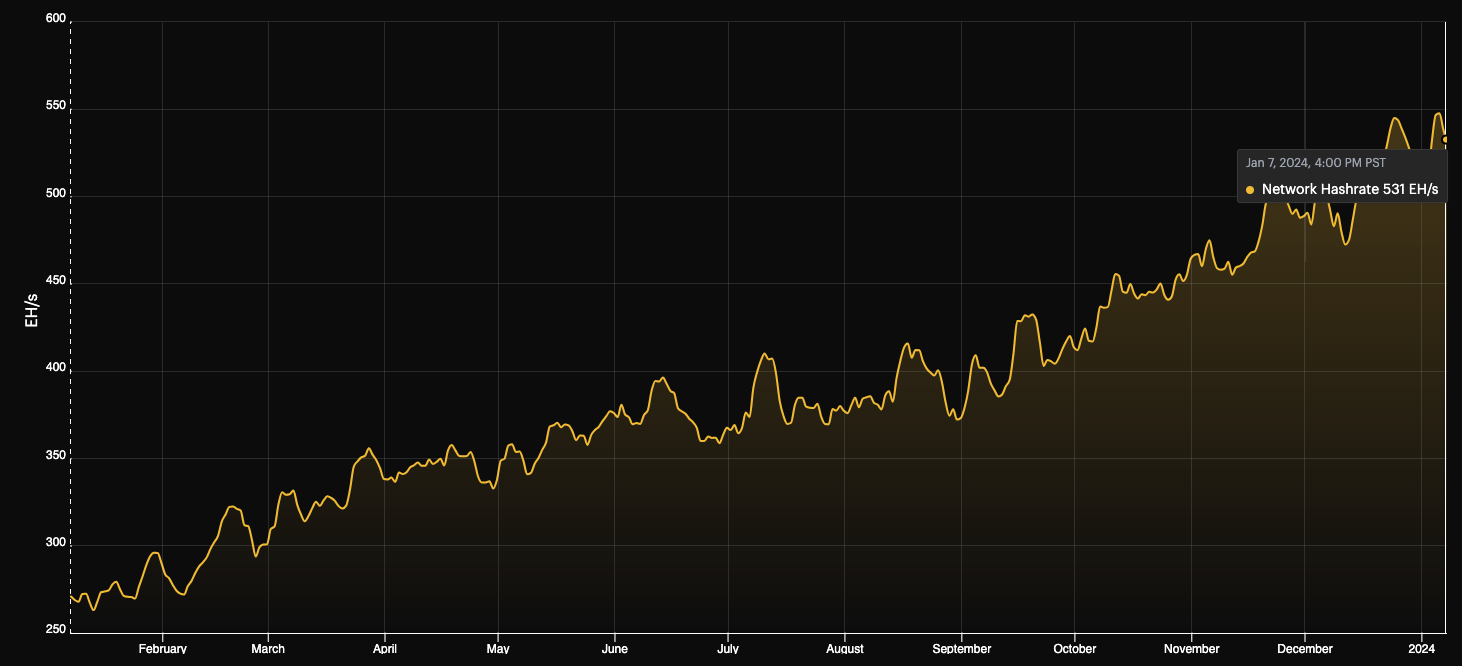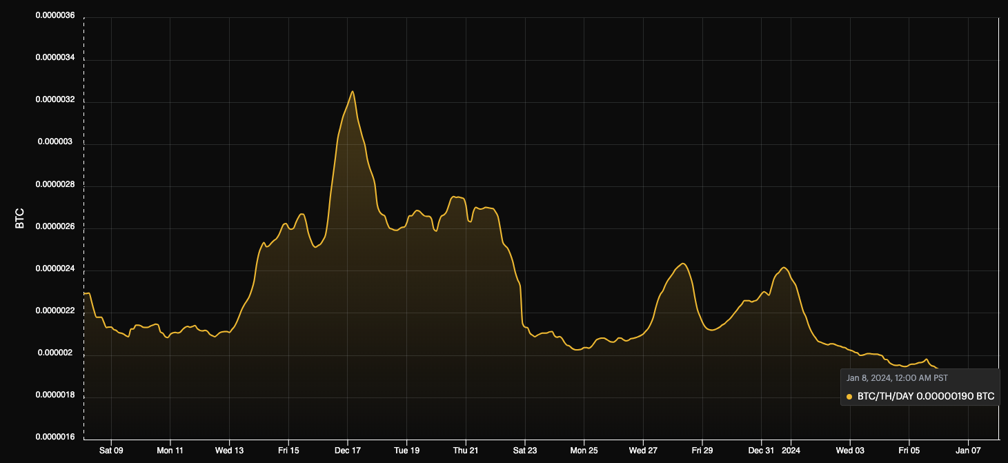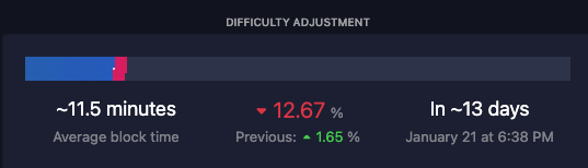 We entered the new difficulty epoch on Friday, January 5th, block height 824,544.