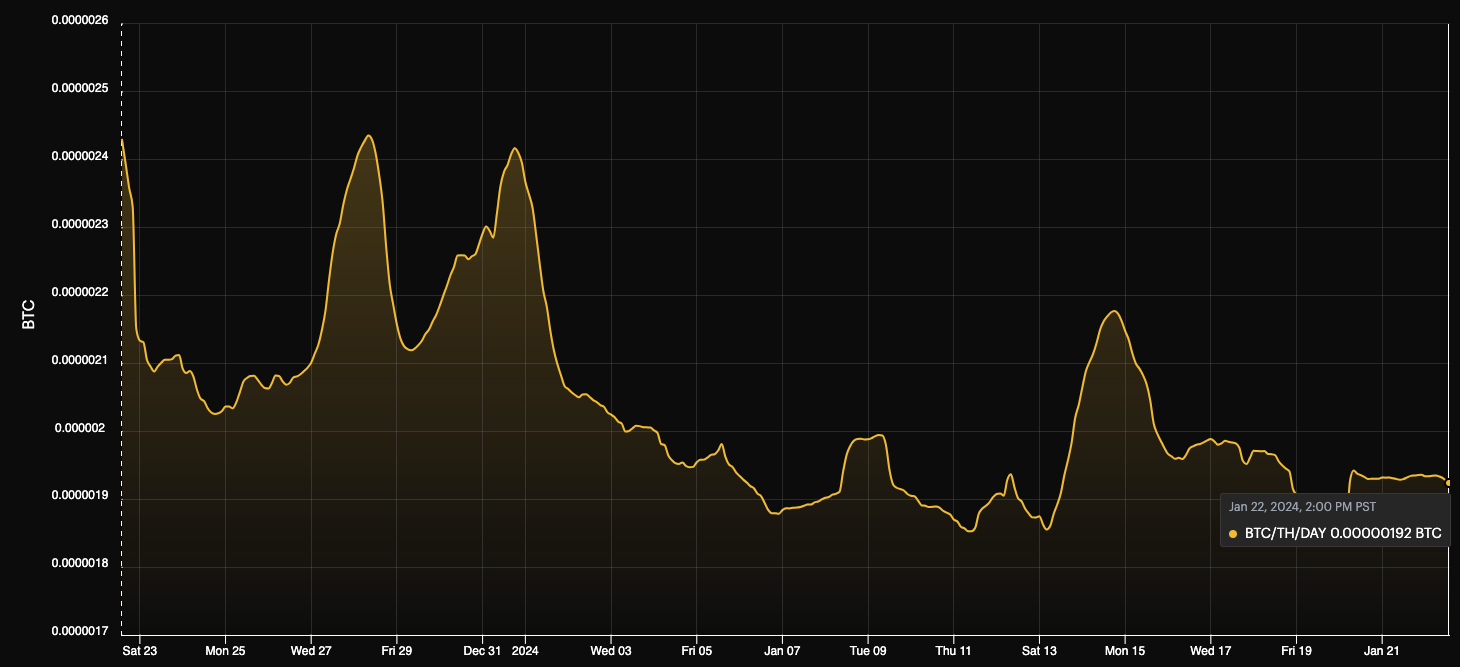 - 192 sats/TH/s/day