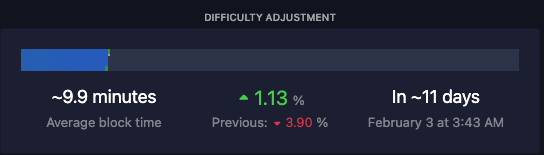 We entered the new difficulty epoch on Saturday, January 20th, block height 826,560.