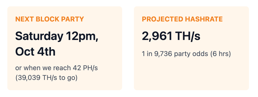 More USA hashrate available for fixed return mining, plus next week's block party.