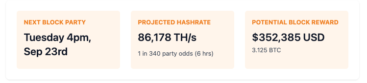 5% discount fixed-return hashrate available, plus: block party starts today!